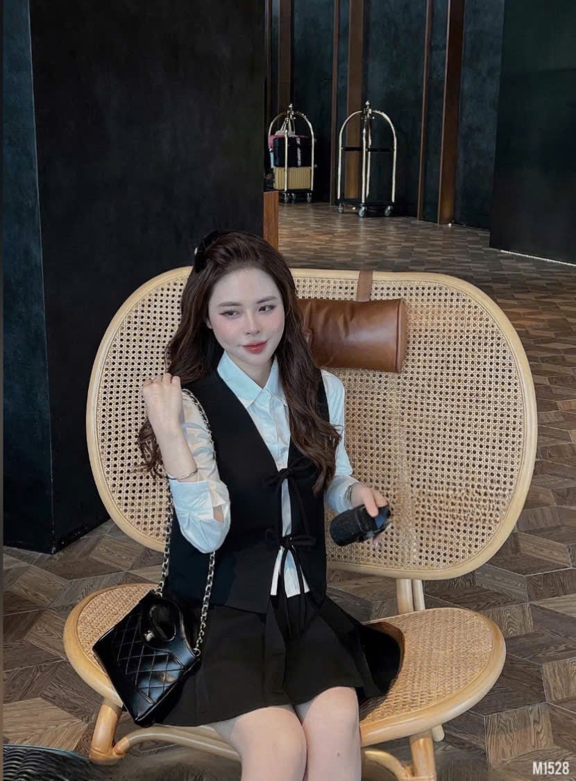 Size S :Ngực sơmi 98, Dài 50 - Ngực gile 90, Dài 55, Eo 68, dài váy 38cm