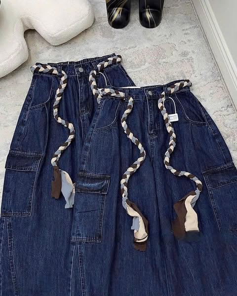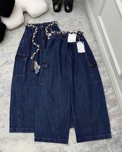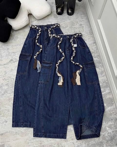 VGU1666 - QUẦN JEAN RỘNG TÚI HỘP PHỐI DÂY (Q.LẺ)