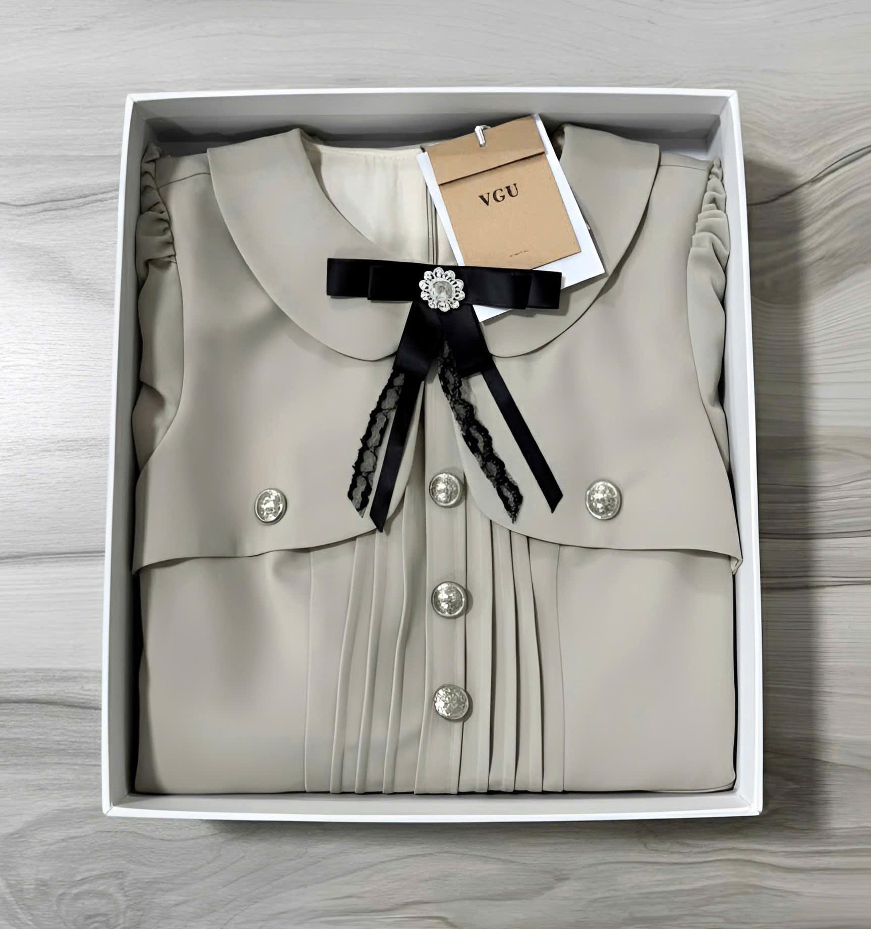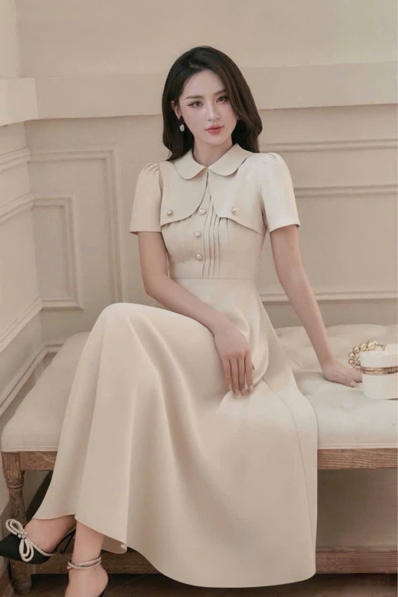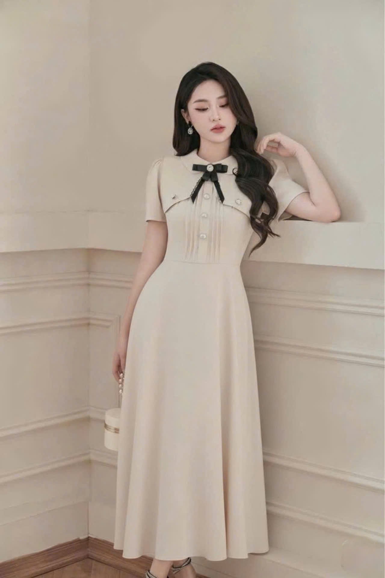 VGU1829 ĐẦM CỔ ĐÍNH NƠ (MÀU DA)