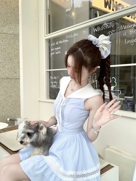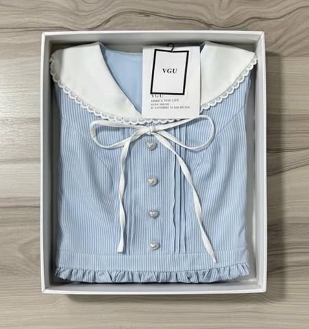 VGU1839 - ĐẦM NGẮN SỌC XANH PHỐI CỔ