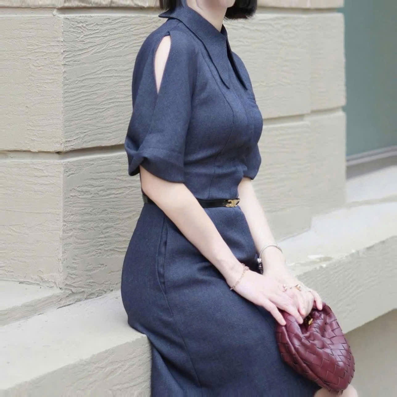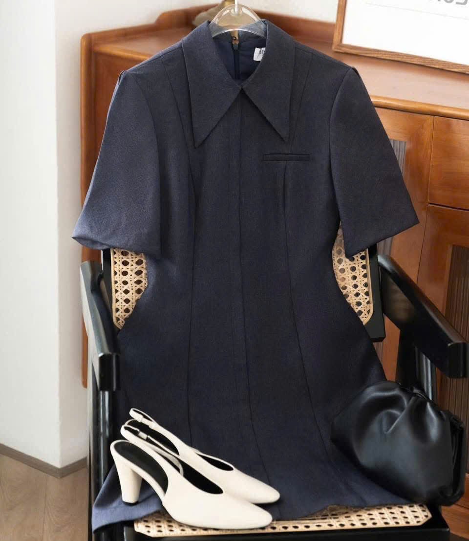 VGU1856 ĐẦM NGẮN CỔ SƠ MI KÈM NỊT