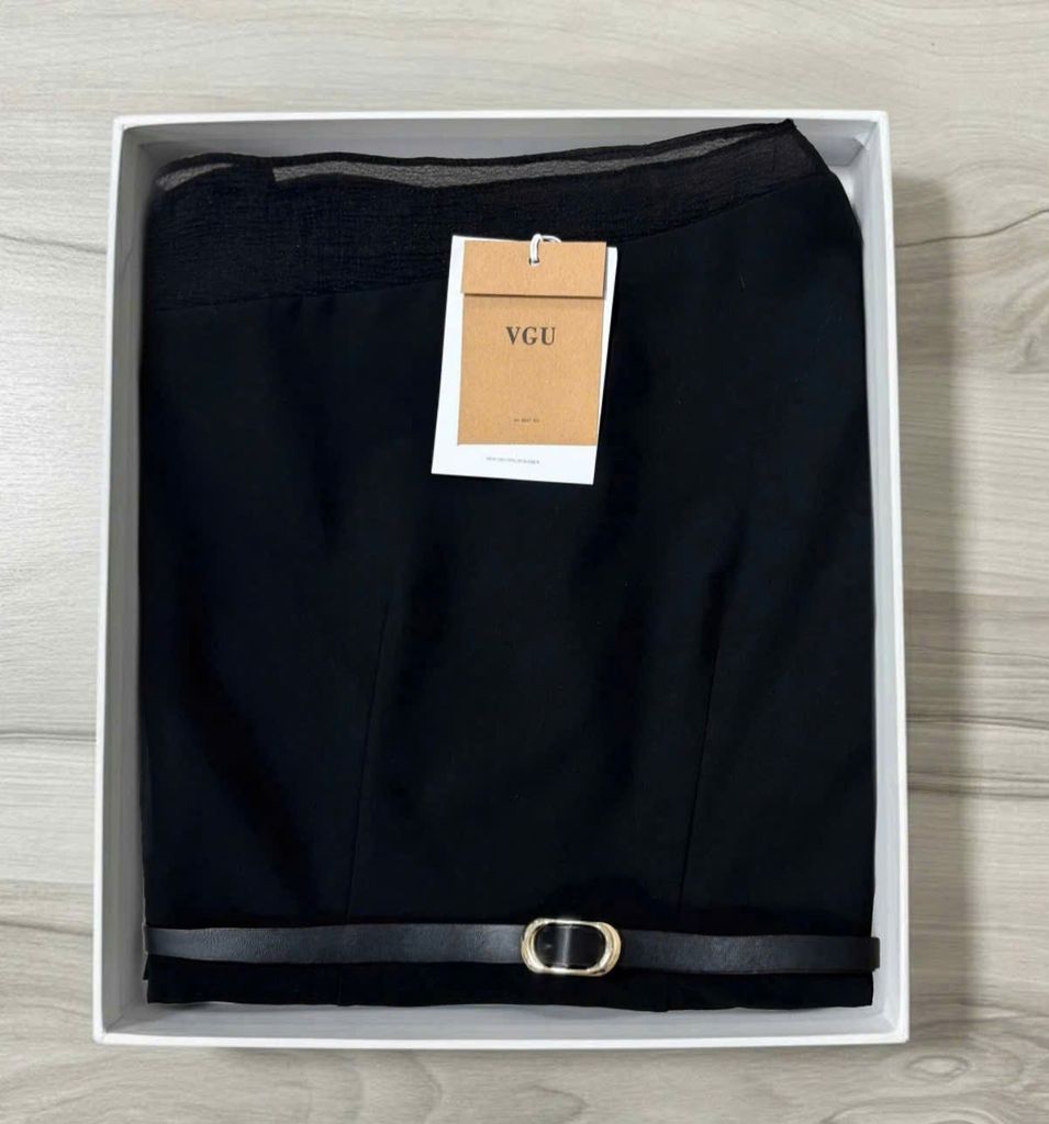 VGU1869 ĐẦM ĐEN LỆCH VAI KÈM NỊT