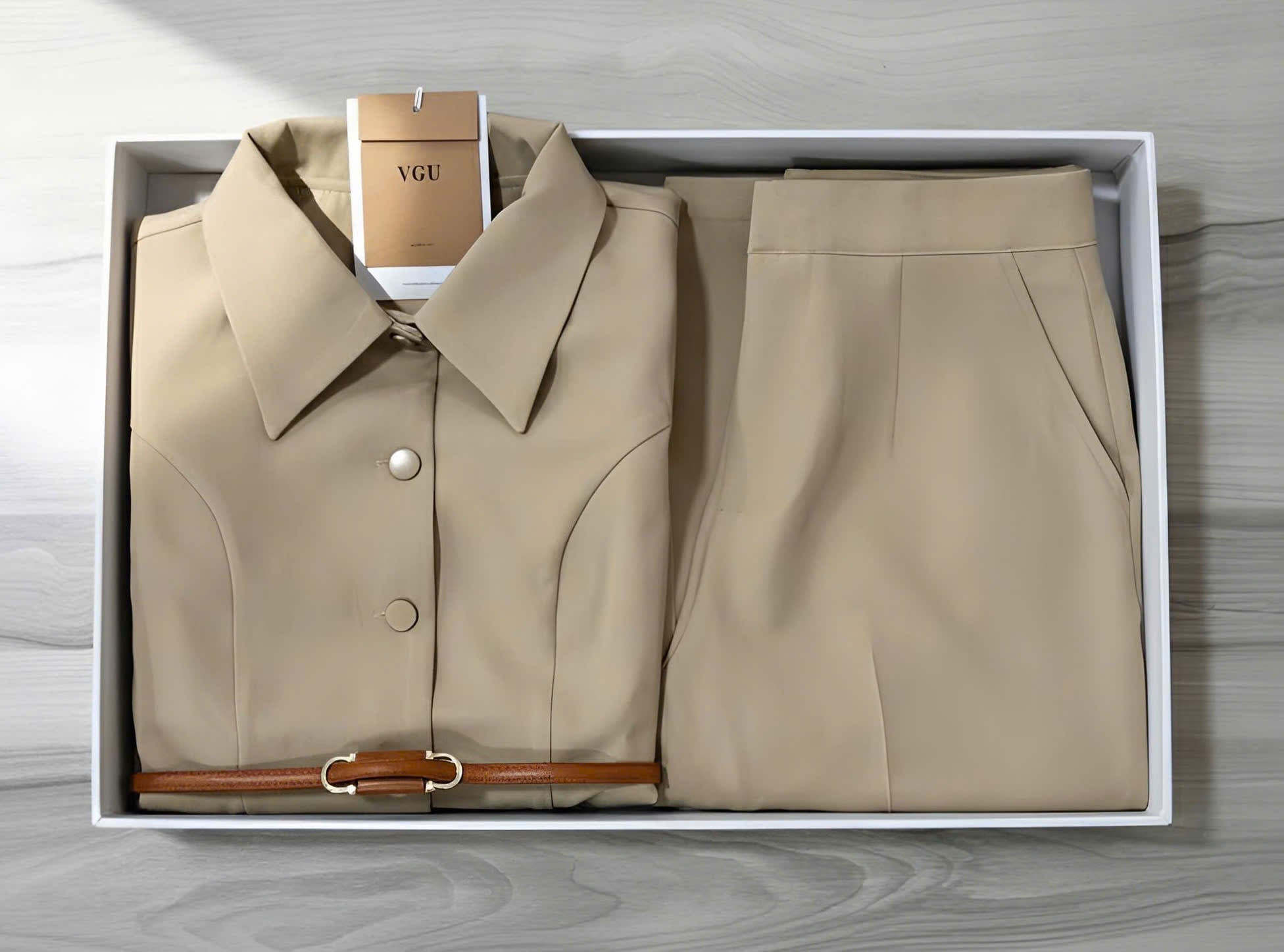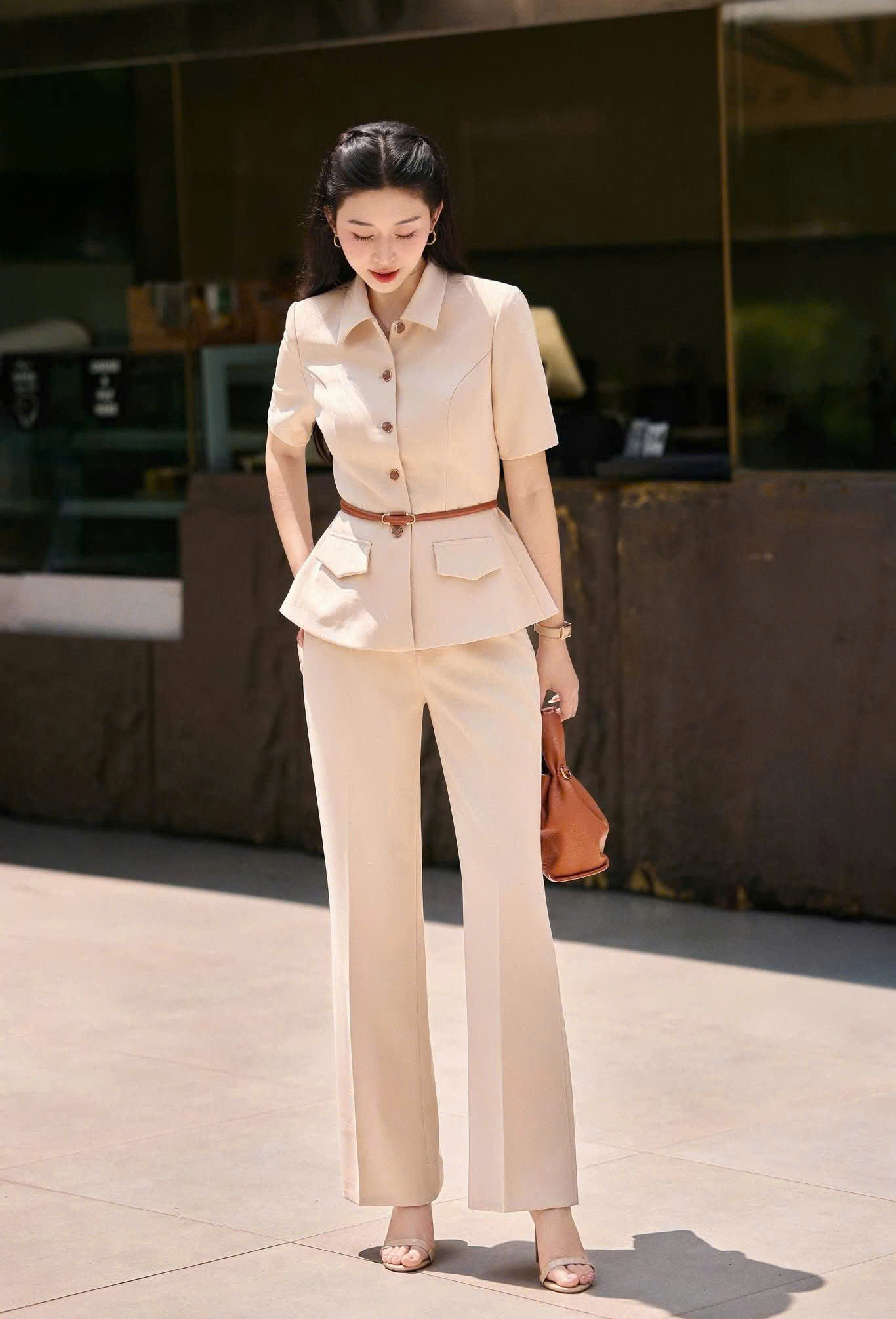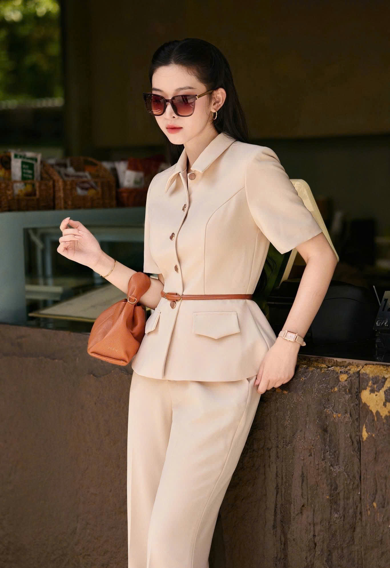 VGU1892 SET CÔNG SỞ CỔ SƠMI - QUẦN TÂY + NỊT (NÂU ẢNH SÀN)
