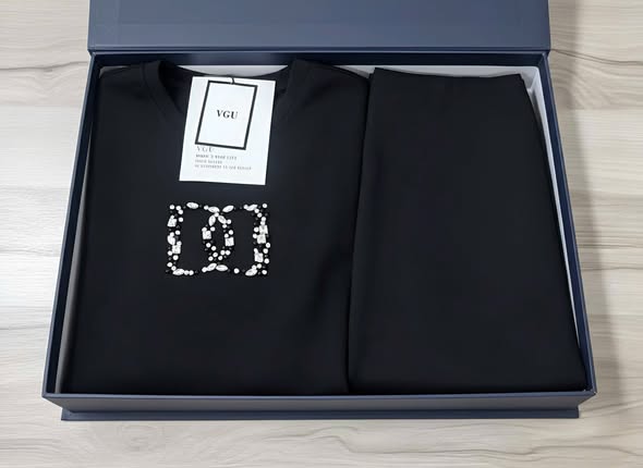 VGU1959 - SET ÁO ĐÍNH HẠT, VÁY NGẮN (ĐEN)