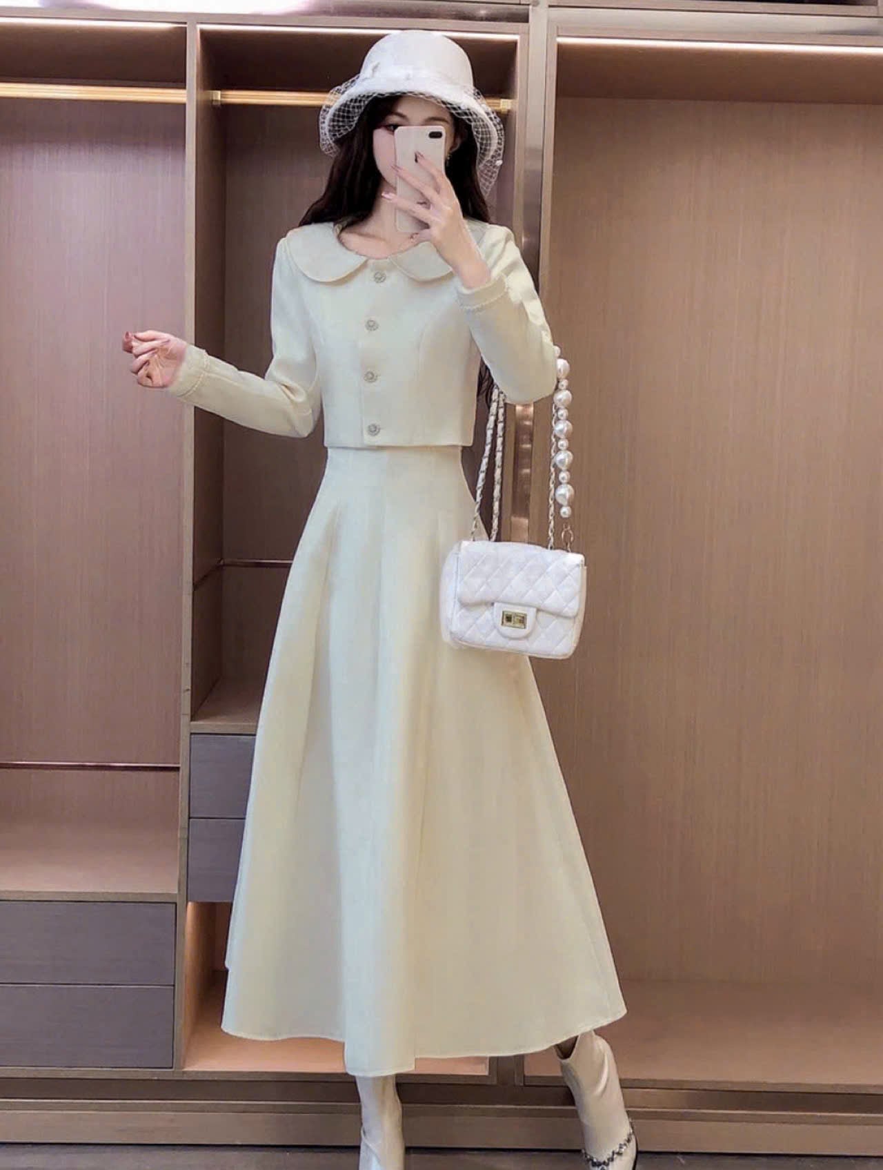 SIZE S: NGỰC 86, DÀI ÁO 45, EO 68, DÀI VÁY 81CM