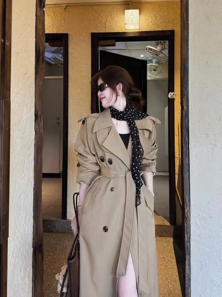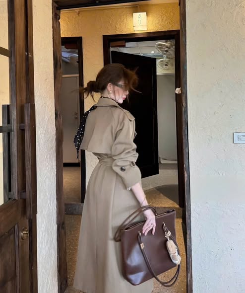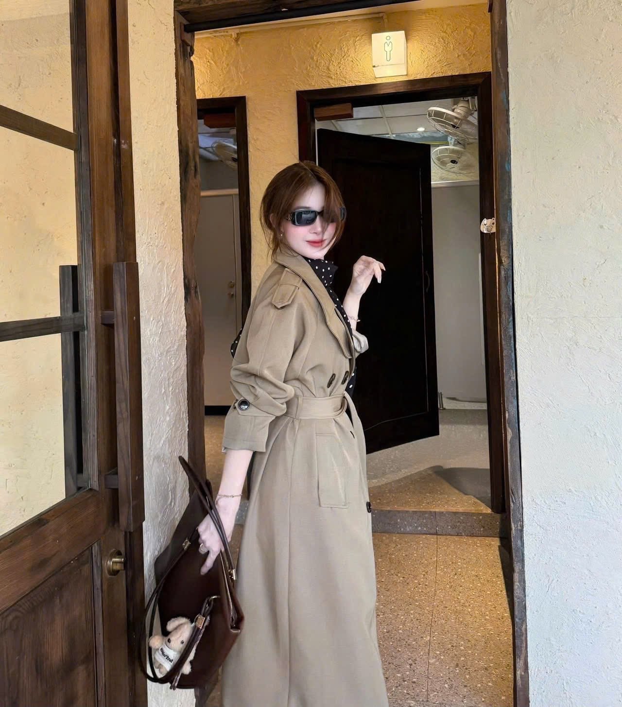 VGU2030 - ÁO MĂNG TÔ DÁNG DÀI KÈM KHĂN + DÂY (NÂU)