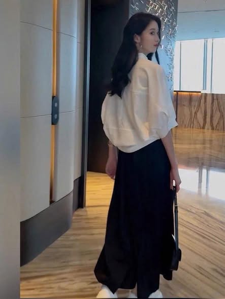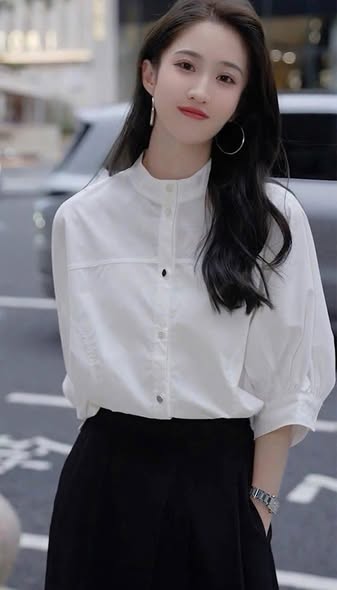 VGU2057 - SET ÁO SƠMI TRẮNG CÁNH DƠI, VÁY DÀI ĐEN