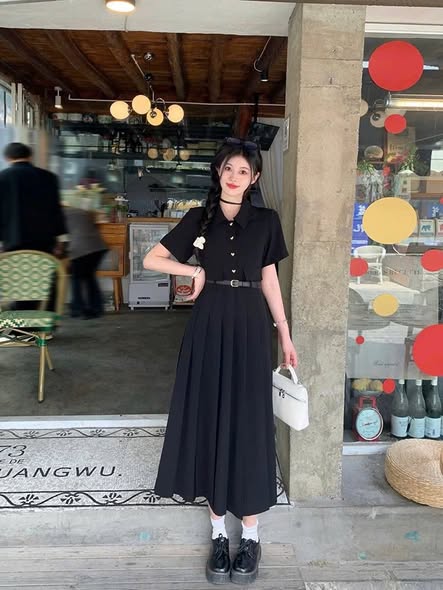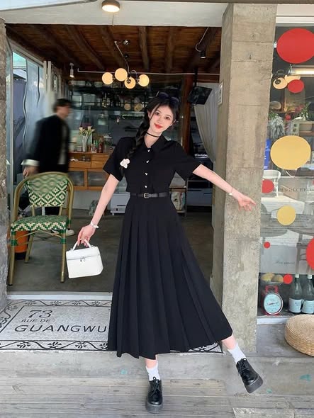 VGU2065 - ĐẦM SƠMI NÚT TIM TÙNG LY ĐEN (KÈM NỊT)
