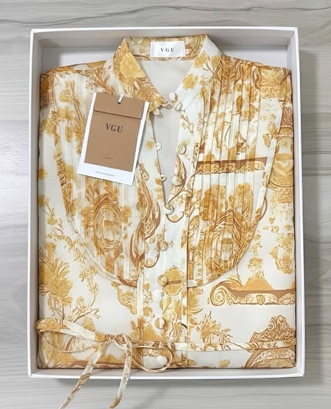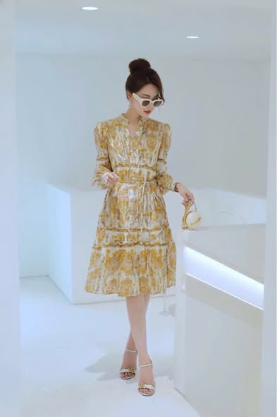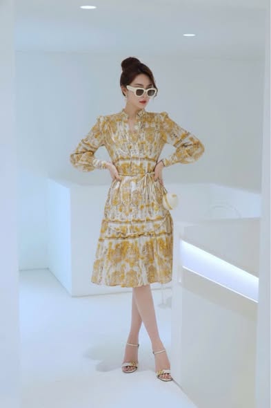 VGU2337 - ĐẦM TAY DÀI HỌA TIẾT VÀNG