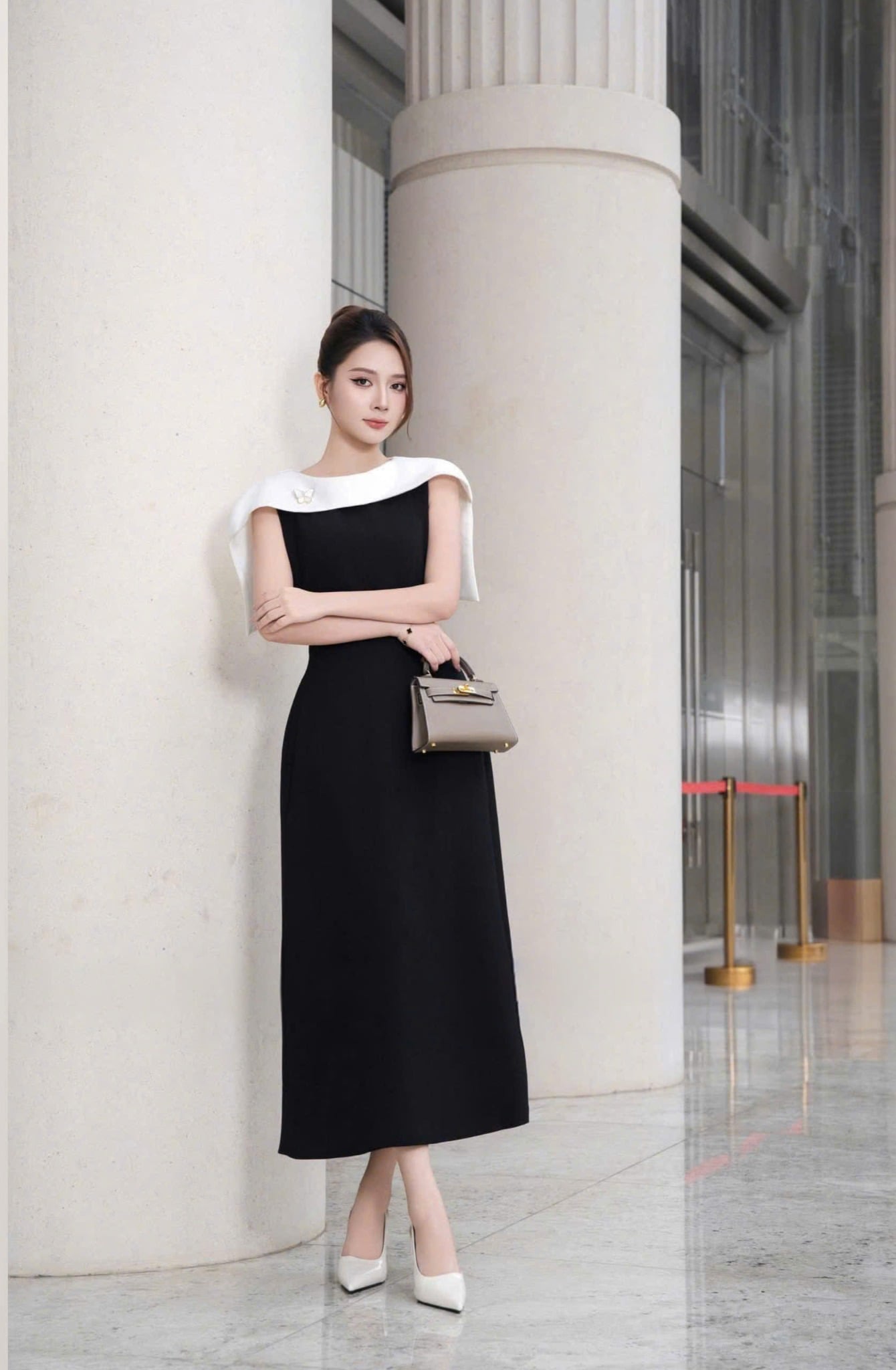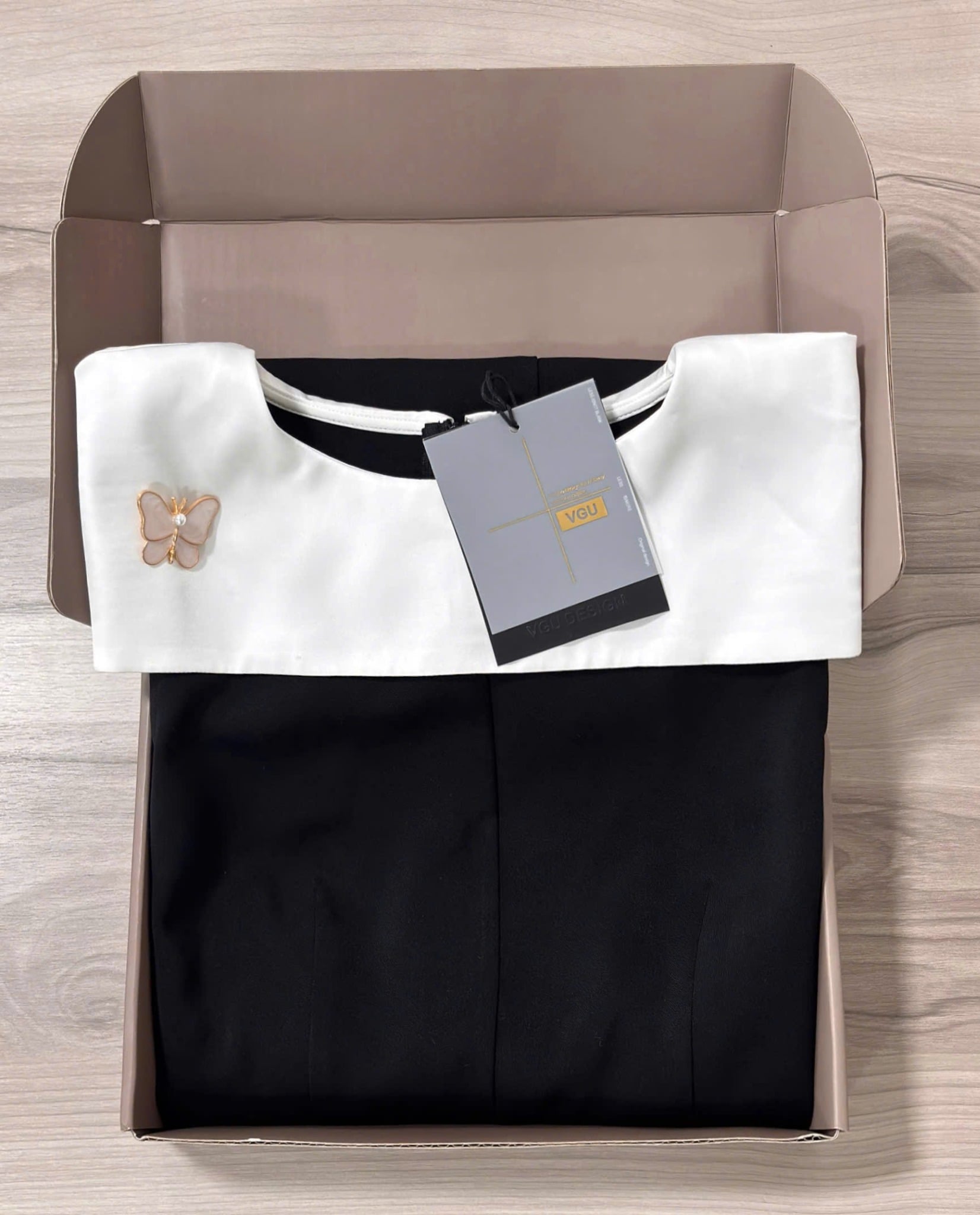 VGU9748 ĐẦM ĐEN CỔ CHOÀNG TAG BƯỚM
