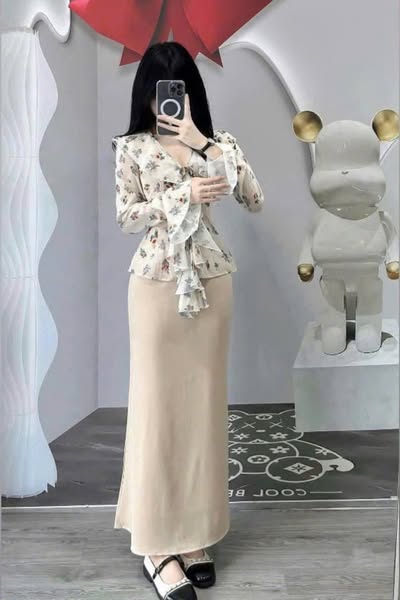 VGU9981-Set TK áo kiểu tay loe, CV dài
