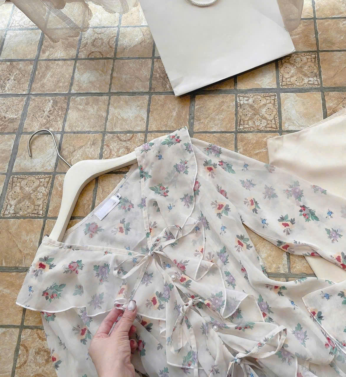 Size S : ngực áo 90, dài áo 57, eo váy 68, dài váy 91